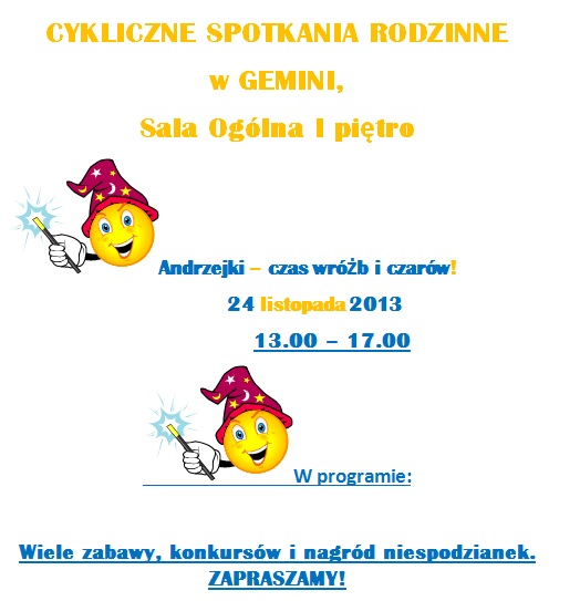 ZAPRASZAMY SERDECZNIE. Centrum Gemini- I piętro, Sala Ogólna. Godzina 12.00. więcej...