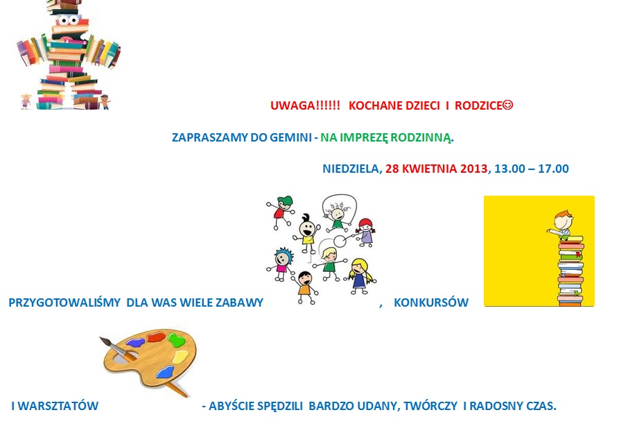 Impreza odbędzie się pod hasłem święto książki - więc przygotujcie się - bo każdy z Was może zostać pisarzem lub poetą :)