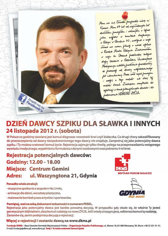 Już dziś Centrum Gemini stanie się ulubionym miejscem spotkań przyjaciół dawców szpiku... również tych potencjalnych i przyszłych, którzy dopiero się zarejestrują. Przyjdźcie koniecznie do nas w godzinach od 12.00 do 18.00. Serca będziecie mieć przy sobie - ale nie zapomnijcie dowodów osobistych koniecznych do przeprowadzenia rejestracji w bazie danych dawców fundacji DKMS. więcej...